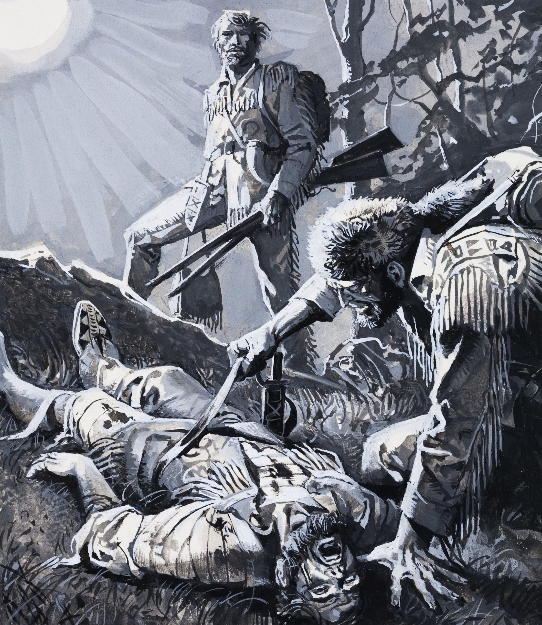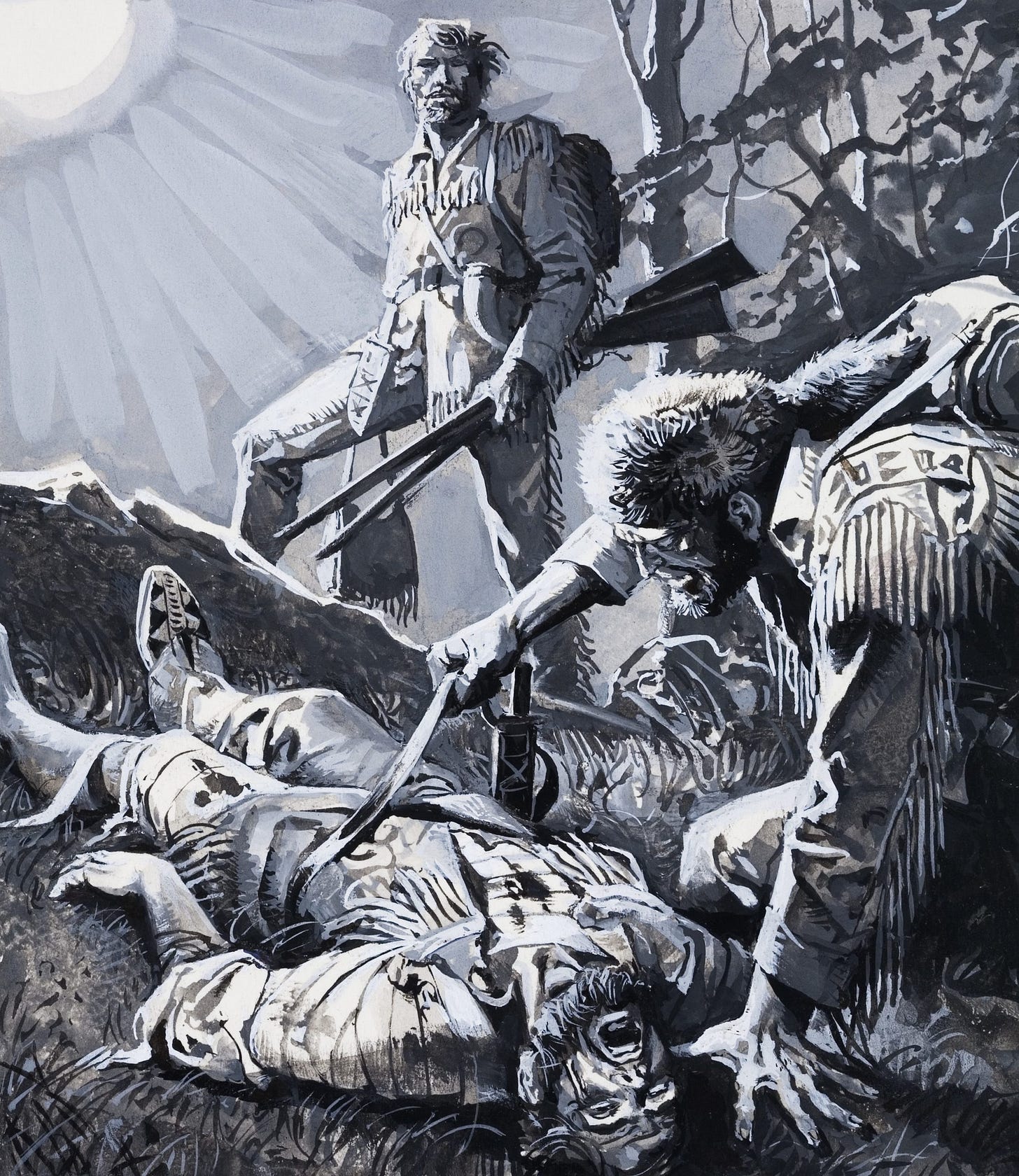 The frontiersman’s long rifle was akin to the sword of a knight. It was cherished as the sole companion of an otherwise lonely man and nigh-inseparable from the body. Rifles, just as swords, were christened with names. Though, we do not know what name was given to Hugh’s beloved weapon.