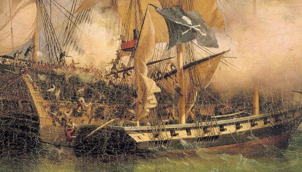He is an old man, sailing the glassy waters off the coast of Texas, when his ship is seized by a pirate named Jean Lafitte, who is a notable historical figure in his own right.